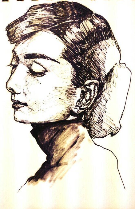 クロセシンゴ A Twitter 過去作品 オードリー ヘップバーン 絵 イラスト アナログ 線画 筆 モノクロ 白黒 オードリーヘップバーン 似顔絵 Illustration Art Artwork Draw Drawing Audreyhepburn Portrait T Co F4ufwaaum2